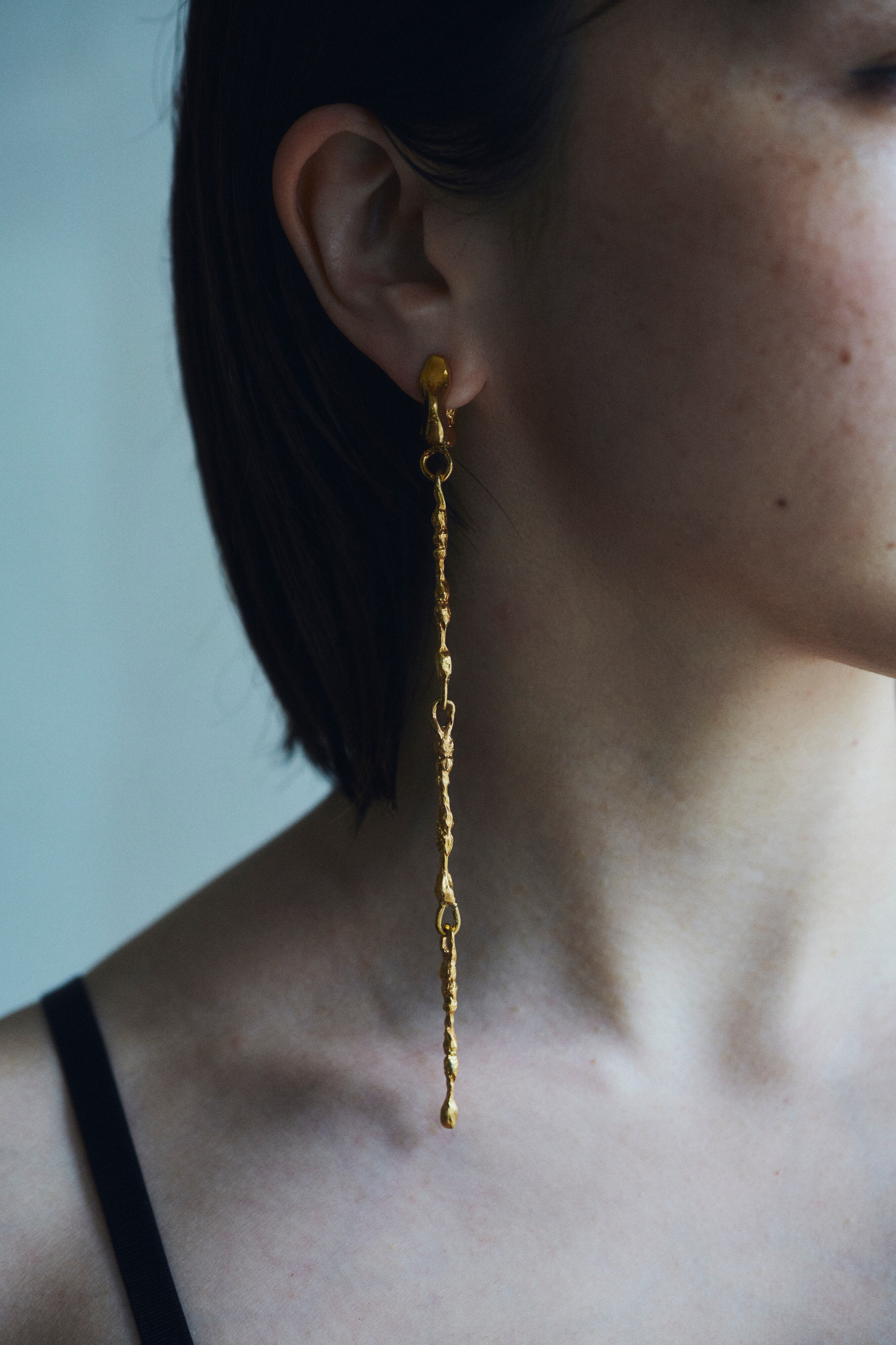 実と、細い枝がぶら下がった架空の植物をイメージしながら製作したピアス。 サイズ 縦145mm前後 素材 SLV925 24KP 制作期間はオーダーから2ヶ月前後になります。