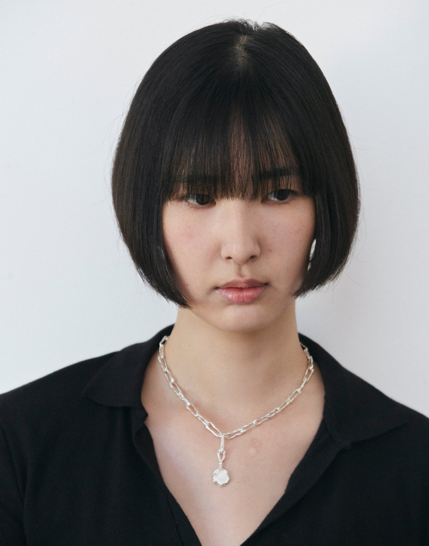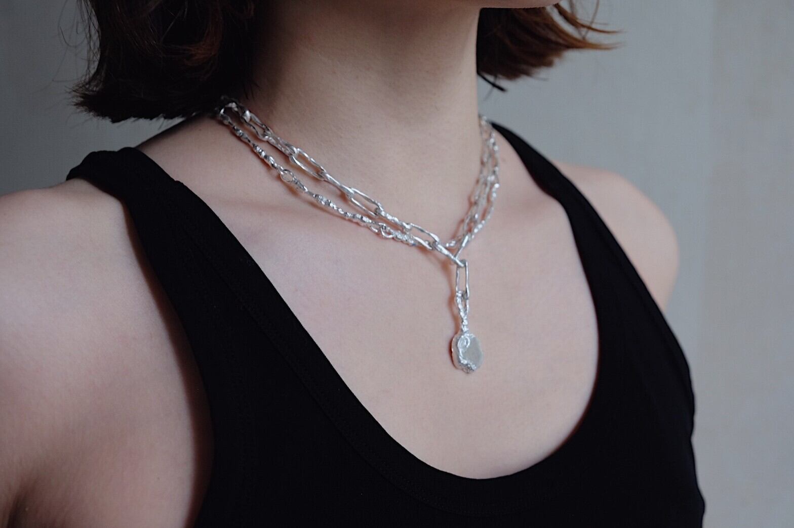 長い年月により風化された石のかけらをイメージしたチェーンネックレス。