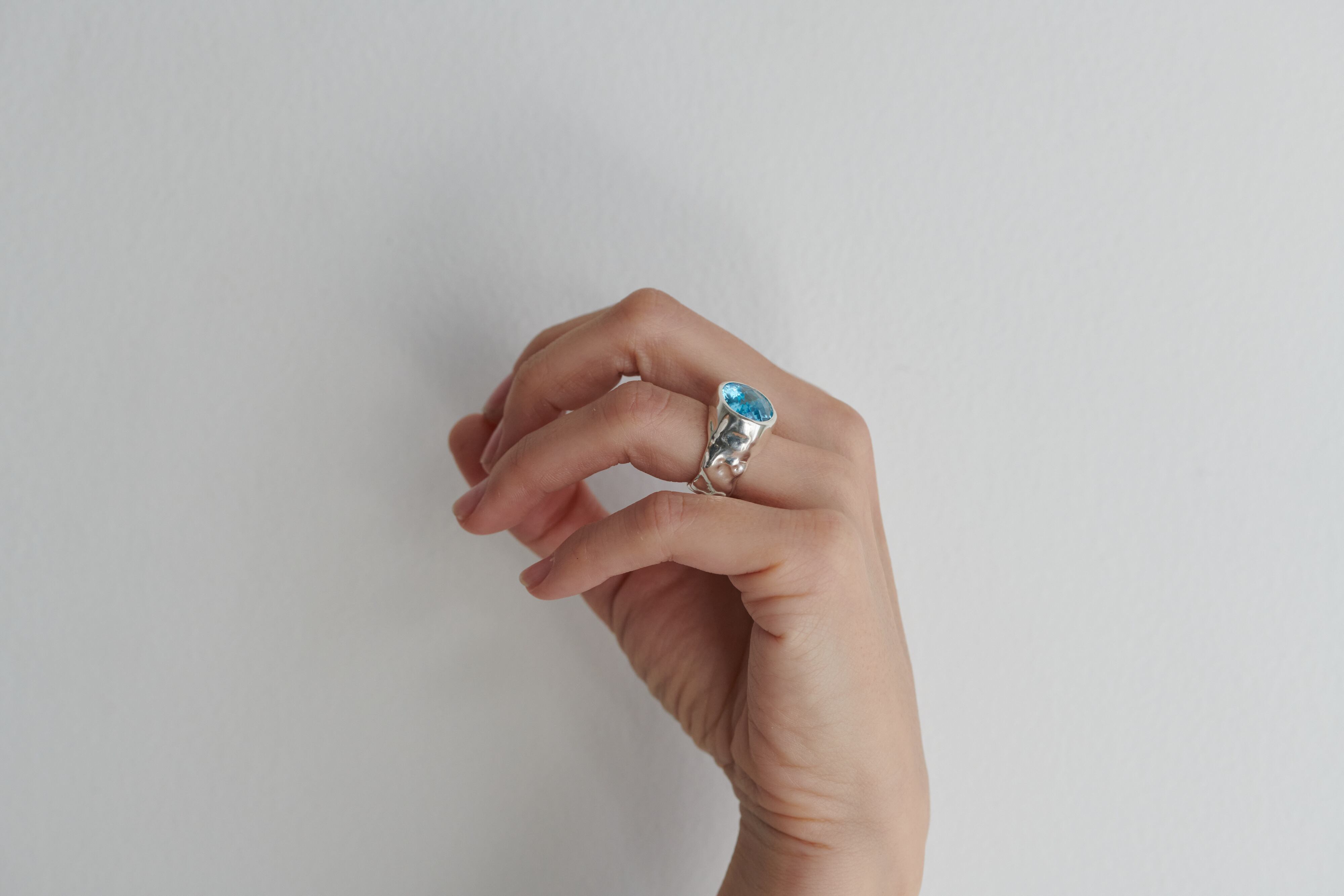 幸運をもたらすとされるエネルギーのあるブルートパーズを留めてます。