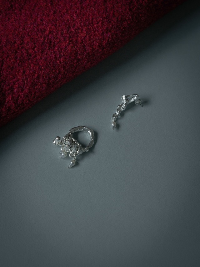 尾の長い少し金属のような色合いの珍しいアコヤパールを合わせています。